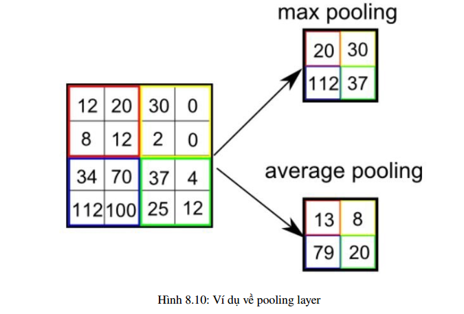 Có 2 loại pooling layer phổ biến là: max pooling và average pooling.