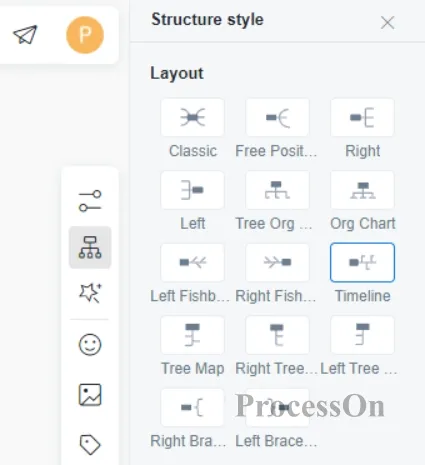 Bước 1: Mở ProcessOn, tạo một bản đồ tư duy mới và nhấp vào dòng thời gian trong cấu trúc bên phải để bắt đầu tạo.