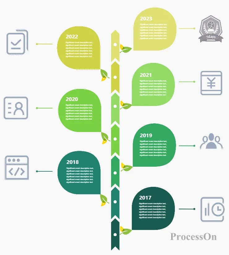 Trên đây, bạn có biết những đặc điểm này của trục thời gian không, thực ra trục thời gian cũng chính là nền tảng để thực hiện ước mơ, thể hiện với người dùng theo hình thái thích hợp nhất. Trục thời gian cũng có thể ghi lại những câu chuyện trong những năm tháng tuổi tác, để thời gian và không gian không còn là chướng ngại vật của chúng ta nữa, chỉ cần một đường thẳng, là có thể trở lại như trước. Biểu đồ lãng mạn và thực dụng như vậy đều có thể thực hiện ở ProcessOn, còn có nhiều mẫu miễn phí tinh xảo hơn, mau tới ProcessOn thử một lần đi.