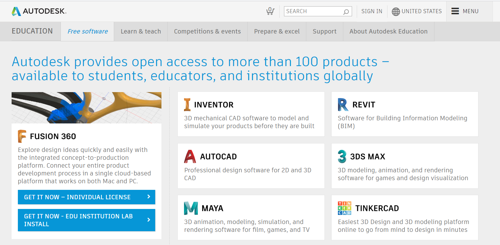 Autodesk cung cấp một phiên bản dành riêng cho việc nghiên cứu và học tập các phần mềm của hãng, đó là phiên bản Education. Có rất nhiều phần mềm khác nhau để bạn lựa chọn: AutoCAD, Inventor, Revit... tất cả đều được miễn phí 3 năm, đủ để các bạn học tập và nghiên cứu. Điều cần làm chỉ là truy cập trang web AutoDesk, tạo tài khoản và bắt đầu tải xuống các phần mềm.