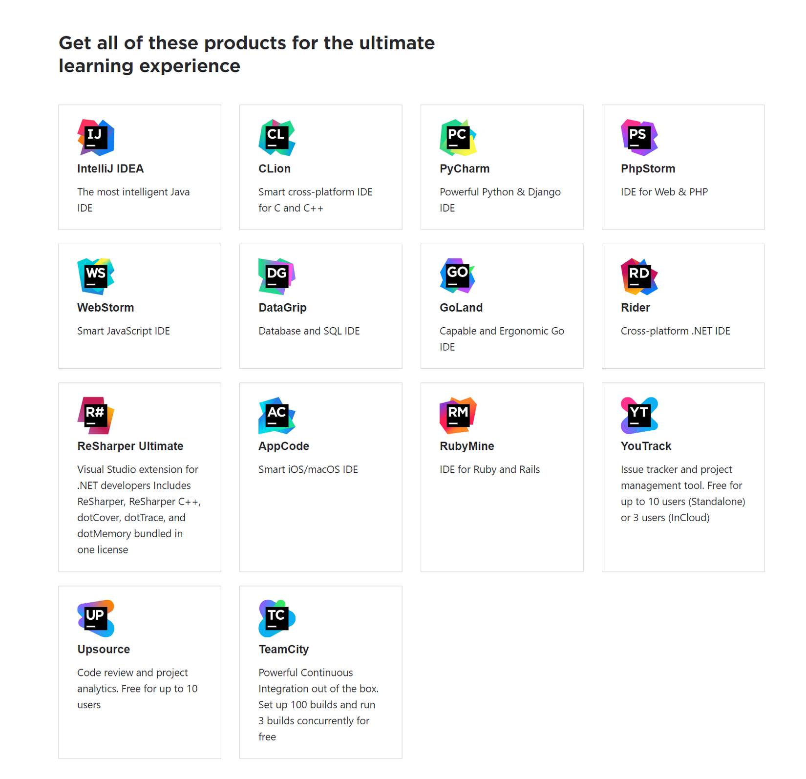 Nếu bạn đang học về Java, PHP, Ruby, hay .NET thì JetBrains là một công ty phần mềm có những công cụ rất hữu ích hàn đầu tiện dụng cho lập trình viên như: