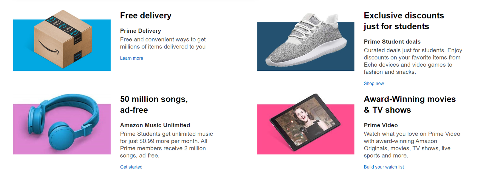 Khi bạn sử dụng tài khoản email .EDU và đăng ký tài khoản Amazon Student - bạn sẽ có thể sử dụng Amazon Prime miễn phí trong sáu tháng, có rất nhiều lợi ích: