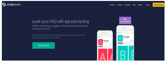 Đặc điểm chính: Storemaven hoạt động để tìm các tài sản tiếp thị tốt nhất để thu hút nhiều lượt cài đặt hơn và Tỷ lệ chuyển đổi tốt hơn. Đối với A/B Testing, công cụ này cho phép sao chép danh sách cửa hàng để gửi bài test đến một phần người xem. Nó có thể theo dõi và phân tích kết quả trong thời gian thực, giúp dễ dàng xem các yếu tố nào đang hoạt động tốt hơn.