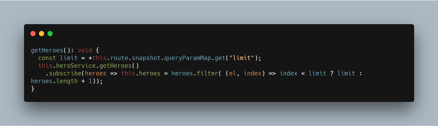 queryParamMap giống như paramMap. Sự khác biệt ở đây là sử dụng nó để xử lý một URL như /heroes?limit=5.