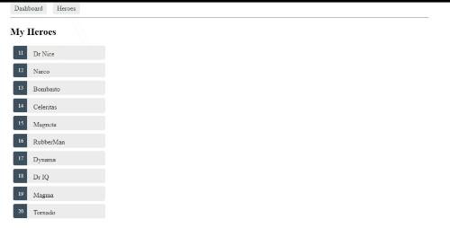 Ví dụ này hiển thị trang danh sách heroes, khi nhấp vào tên hero sau đó sẽ điều hướng đến trang hero detail.