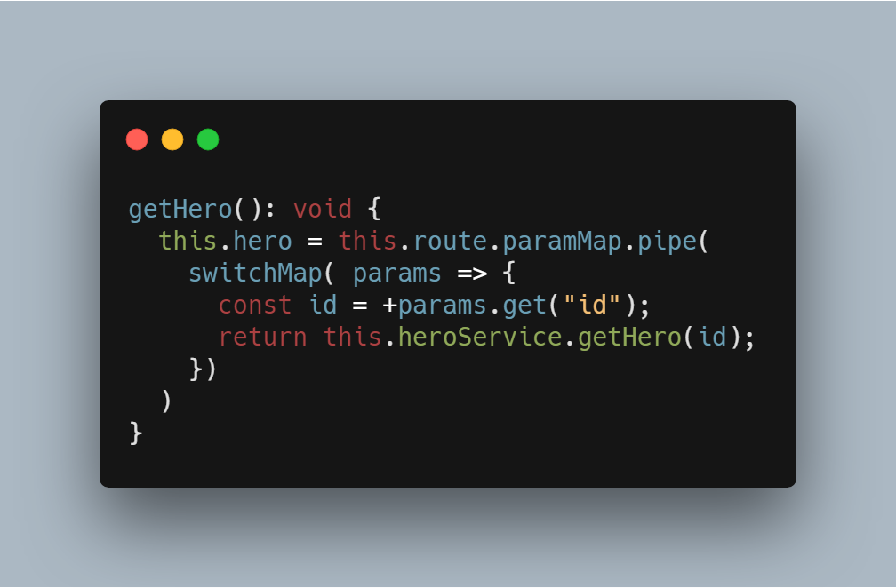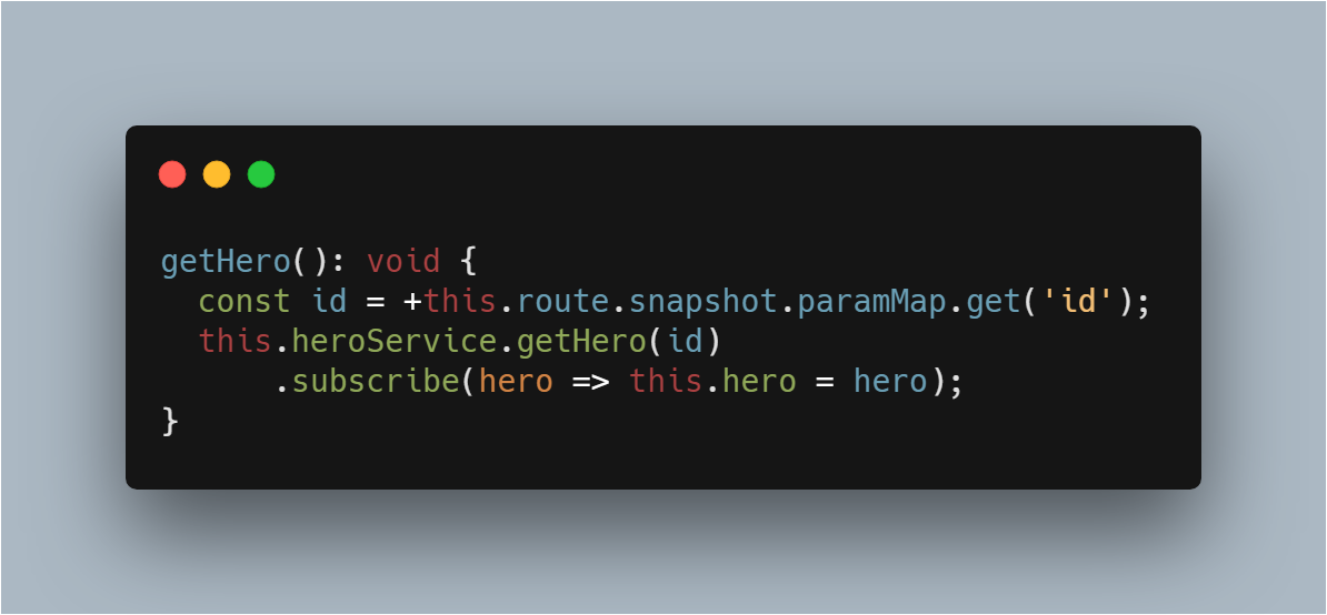 Tôi sẽ lấy được ID của hero từ URL và chuyển nó vào hero service để lấy dữ liệu từ máy chủ bằng dòng mã này: