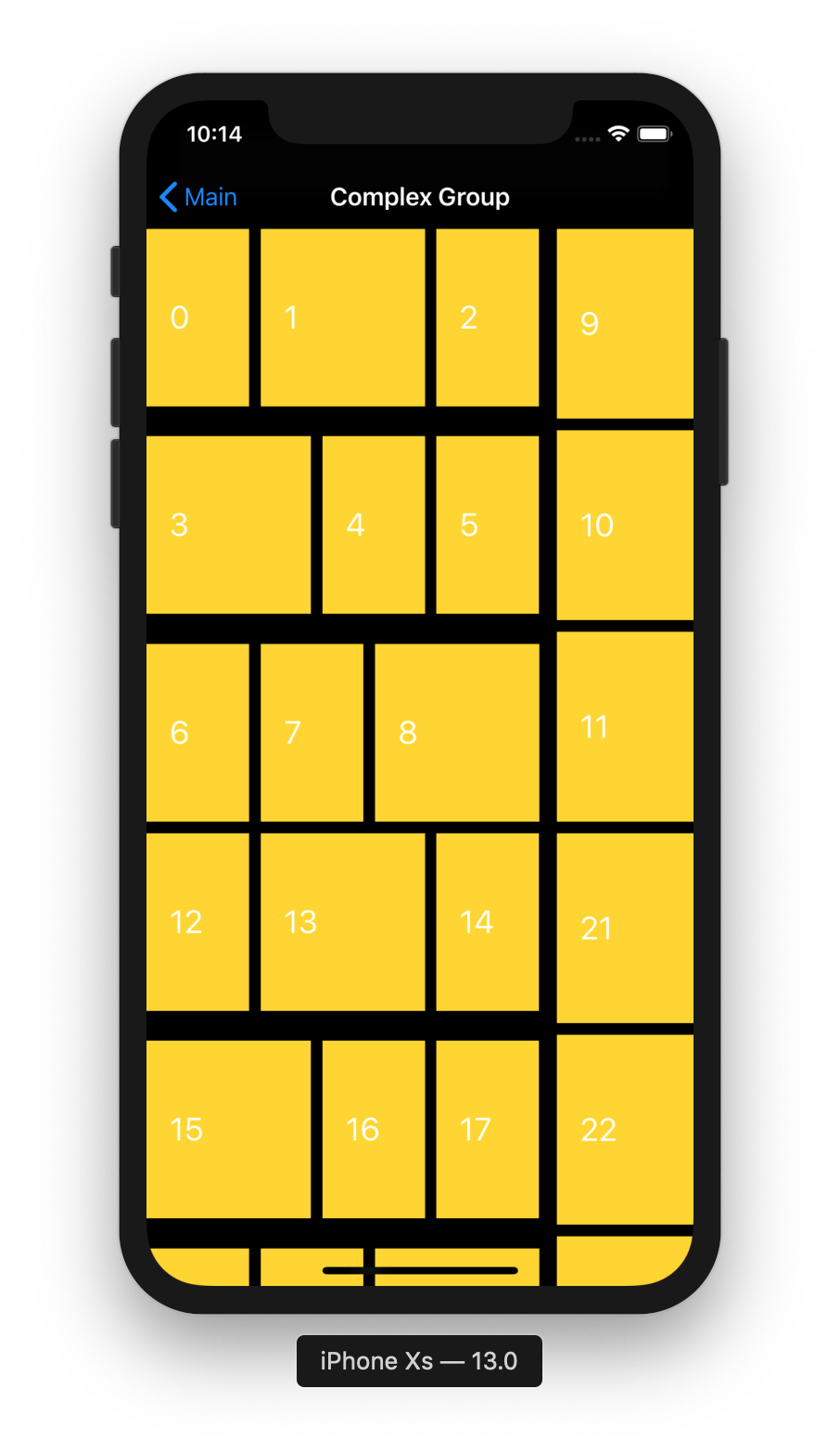 NSCollectionLayoutGroup extending NSCollectionLayoutItem. Nó thêm 1 tính năng rất quan trọng đó là bạn có thể thêm rất nhiều item nếu bạn muốn.Một Section phải có 1 group thì trong lúc rendering Layout thì draw group phụ thuộc số item chúng ta có trong datasource.Ví dụ chúng ta có 1 group và nó có 1 element, datasource sẽ "say": chúng ta có 10 item thì sẽ có 10 group được draw.Nếu chúng ta có 2 item trong 1 group thì sẽ có 5 group được draw. Các group có thể được hình dung như ngăn xếp, nó có thể dọc hoặc ngang, bạn có thể thêm 1 hoặc nhiều item.Nếu bạn muốn đặt các khoảng cách giữa các item bạn có thể dùng biến interItemSpacing.