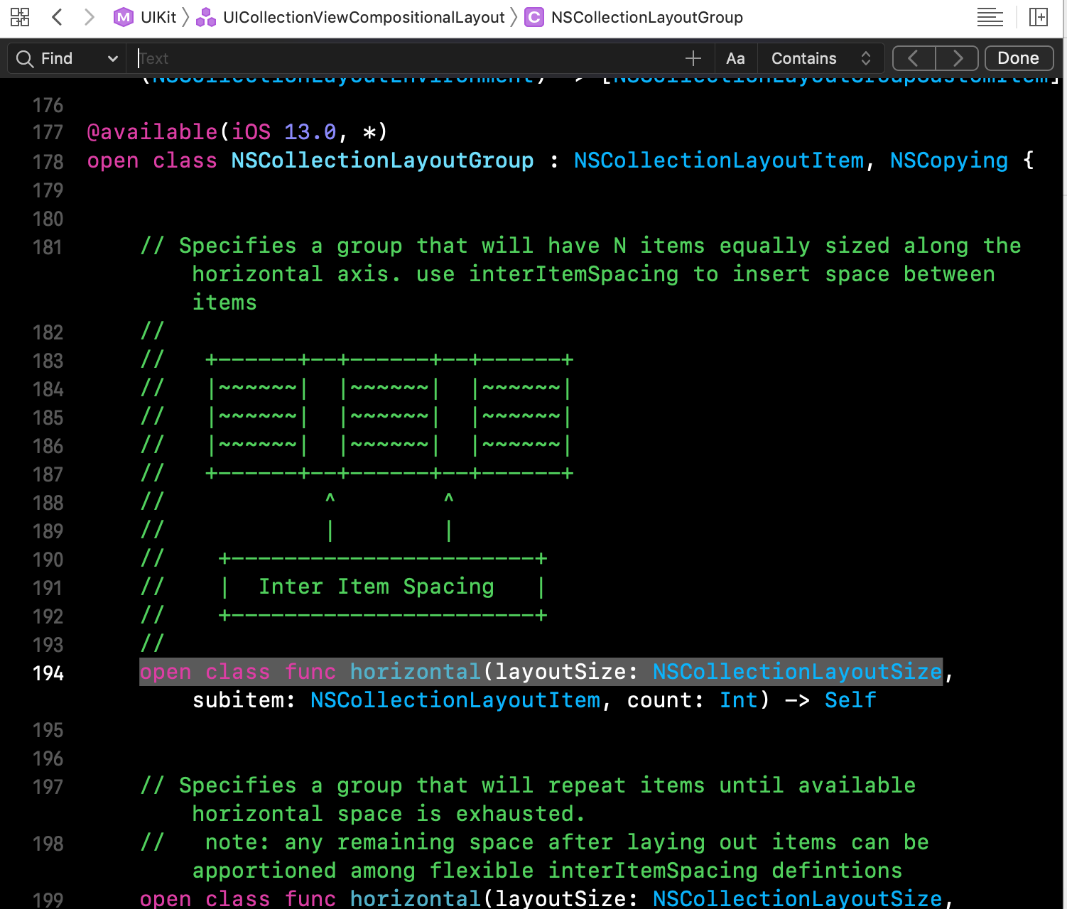 let horizontalGroup = NSCollectionLayoutGroup.horizontal(layoutSize: horizontalGroupSize,