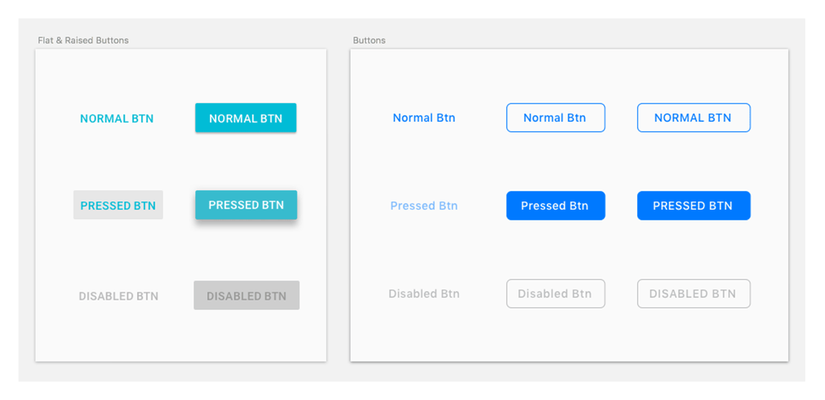 Có hai kiểu nút trong Material Design - phẳng và được nâng lên. Các nút này được sử dụng trong các tình huống khác nhau. Văn bản trên các nút trong Material Design thường là tất cả chữ hoa. Đôi khi chúng tôi cũng tìm thấy văn bản nút chữ hoa trong các ứng dụng iOS gốc, nhưng hầu hết chúng tôi thường tìm thấy trường hợp tiêu đề.