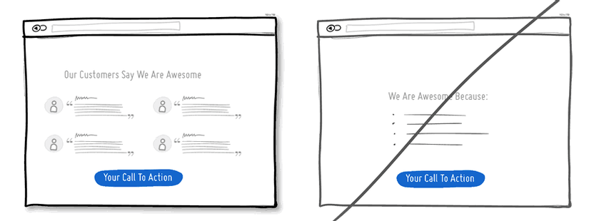 Social Proof (Kiểm chứng xã hội) là một chiến thuật thuyết phục tuyệt vời, áp dụng trực tiếp để tăng tỷ lệ chuyển đổi. Thấy người khác đang ủng hộ và nói tốt về bạn sẽ là một cách tuyệt vời để thúc đẩy lời kêu gọi hành động. Hãy để lại một vài lời phản hồi của khách hàng hay đưa ra các thông tin chứng thực nhằm chứng minh rằng những người khác cũng đã dùng sản phẩm của bạn.