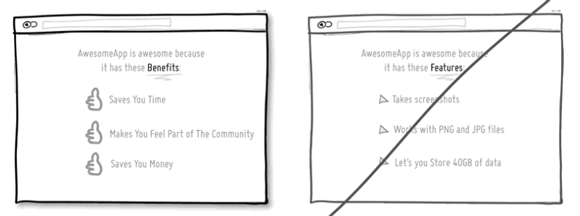 Người ta có xu hướng quan tâm đến lợi ích của dịch vụ, sản phẩm hơn là các tính năng của nó. Bởi những lợi ích mang lại cho họ nhiều giá trị rõ ràng và cụ thể hơn.