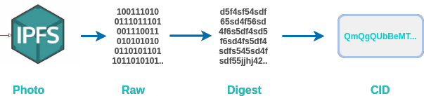Khi chúng ta tải một hình ảnh lên đầu tiên ảnh sẽ chuyển thành dữ liệu RAW ( dạng nhị phân ) mà máy tính có thể hiểu được. Bây giờ, để làm cho nó có thể đánh địa chỉ dựa vào nội dung ( content-addressable) , vì thế phải đưa ra một phương pháp để chúng ta có thể chuyển đổi dữ liệu hình ảnh này thành id xác định duy nhất cho nội dung của nó.