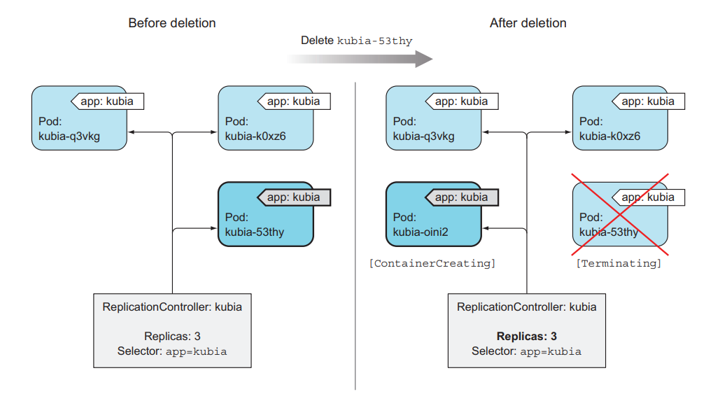 Trong thực tế, các Pods khi được chạy trên các cluster Kubernetes hoàn toàn có thể bị lỗi, chết ngoắc một cách bất ngờ bởi nhiều lý do khác nhau. Với ReplicationControllers, nó sẽ đảm bảo sẽ tạo lại Pods mới thay thế khi Pods cũ bị lỗi (hay các node bị lỗi). Một cách đầy đủ hơn, ReplicationControllers sẽ duy trì số Pods đang chạy với số lượng được chỉ định trước (ít hơn thì tạo thêm pods mới, thừa thì xóa bớt pods đi).