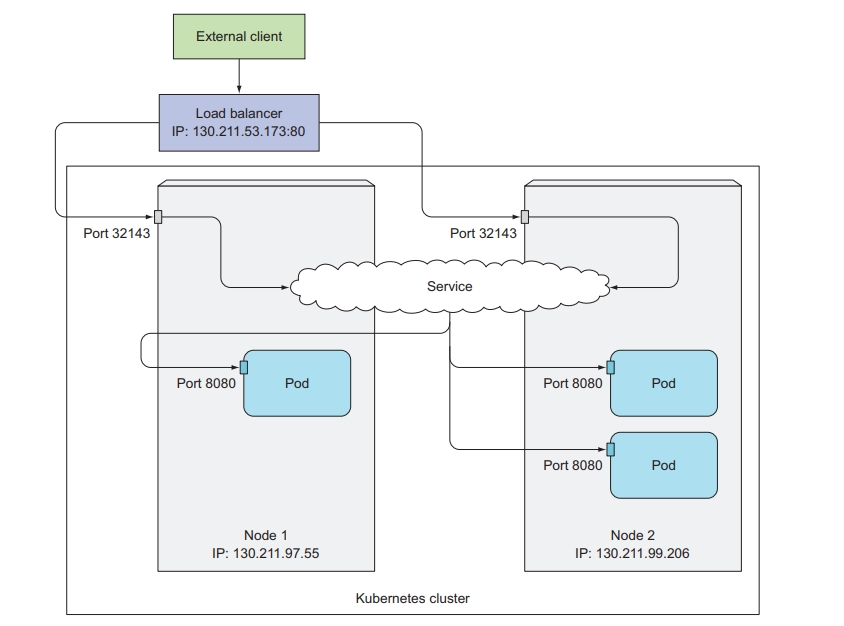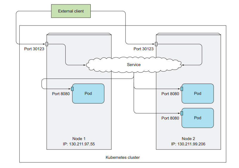 Khi tương tác với service, client sẽ truy cập qua <Địa chỉ Ip public của Node>:Port