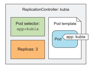app: kubia - template: là phần pod template, mô tả tên images, port để có thể chạy container trong pods lên.