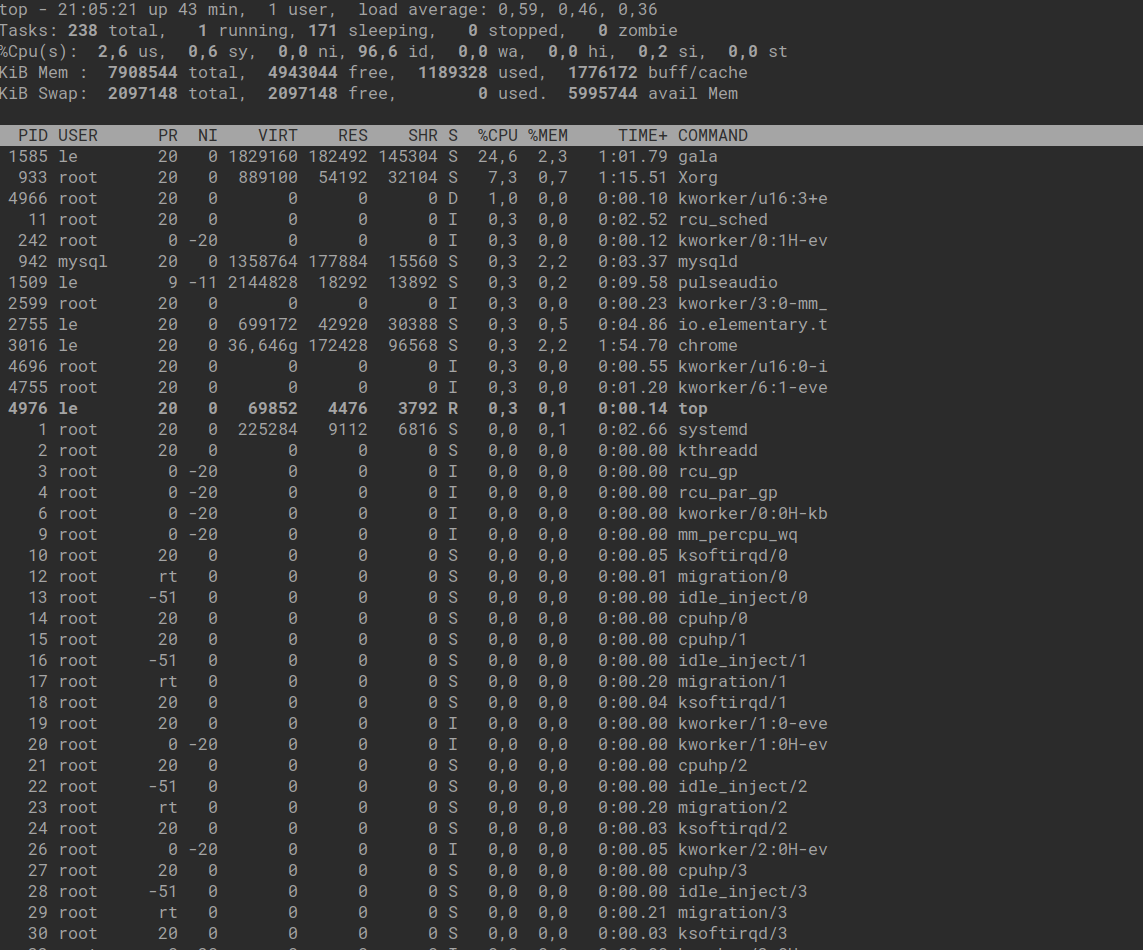 Bạn muốn kiểm tra thông tin cpu, ram, network giống như task manager trên window. Câu lệnh top sẽ giúp bạn thực hiện điều này