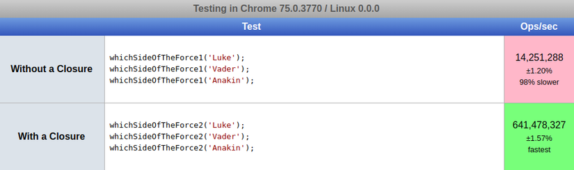 Tương tự như trên mỗi lần ta gọi hàm doSomething thì hàm doSomethingElse lại được tạo mới. Lần nữa thì closures function lại là giải pháp :