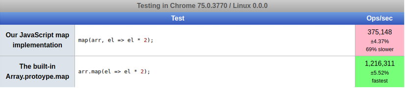 Để kiểm tra thì tôi sẽ test hàm map của javascript và hàm map tự code:
