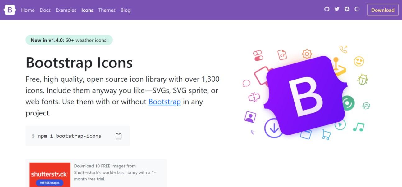 Bootstrap có thư viện icon mã nguồn mở miễn phí, chất lượng cao với hơn ~1.300 icons. Với 4.3k stars trên Github đây là thư viện không thể bỏ qua nếu bạn kết hợp với thư viện giao diện Bootstrap.