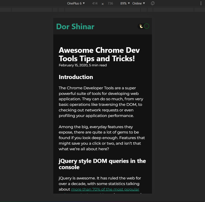 Khi bạn nhấp vào nút trông giống như máy tính bảng và điện thoại, bạn sẽ thấy chế độ xem của trình duyệt thay đổi để phản ánh kích thước của một thiết bị khác.