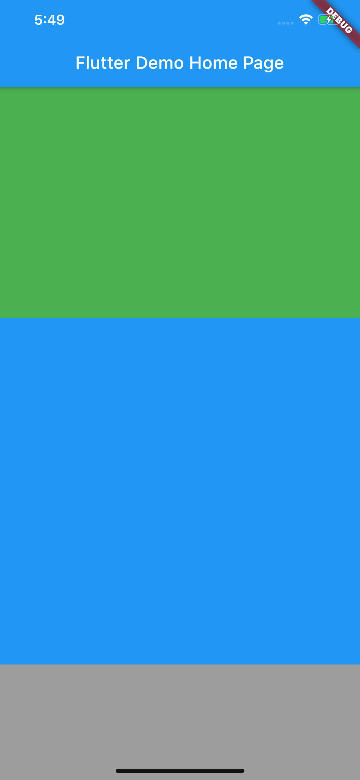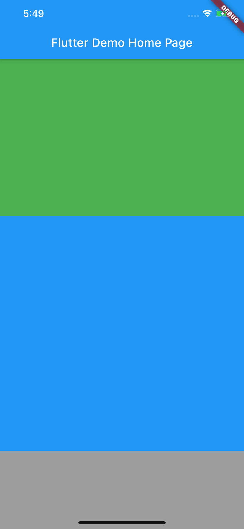 Như các bạn thấy thì trong ví dụ trên widget cha được chia thành 3 widget con green, blue, grey theo tỉ lệ flex là 2:3:1, mặc định flex = 1. Ngoài ra thì expanded cũng được sử dụng trong trường hợp dynamic height hay width của child widget theo parent widget ví dụ bạn có 1 Column chứa 2 Container trong đó 1 Container có chiều cao là 50, còn Container còn lại có chiều cao bằng phần còn lại của Column bạn hãy wrap Container thứ 2 trong 1 Expanded: