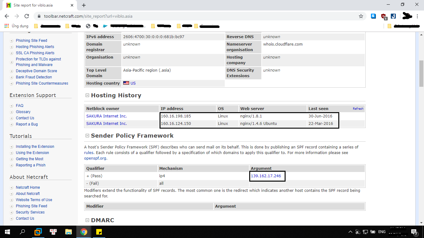 Vậy ta có thấy netcraft đã ghi dc 3 IP là 160.16.198.185 , 160.16.124.150, 139.162.17.246