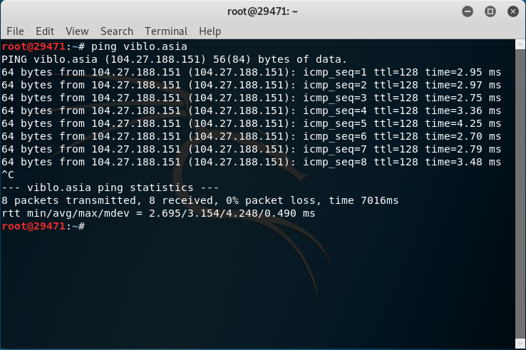 Đầu tiên khi chúng ta đã xác định được mục tiêu , để có được IP hãy thử với ping : ping viblo.asia