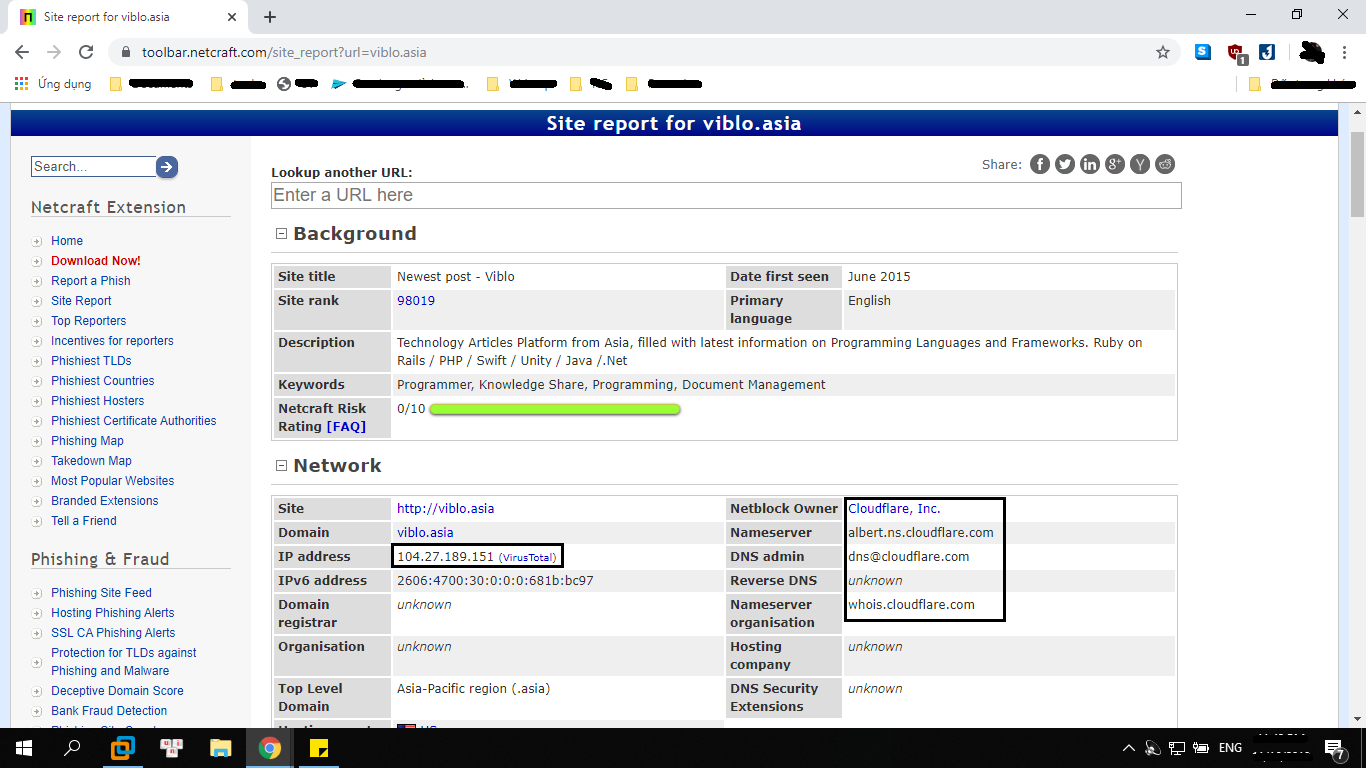 Vậy là tôi bắt đầu tìm các report trong Netcraft về Viblo.asia