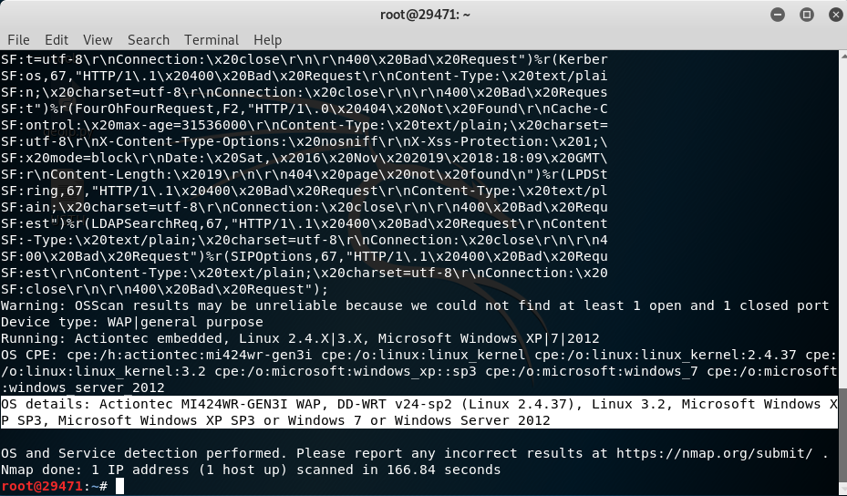 vì ở đây ta có thể thấy không phát hiện được có cổng nào đóng nên độ chính xác về xác định hệ điều hành cũng giảm đi và như trường hợp này ta tạm biết được thông tin là HDH sử dụng nhân Linux
