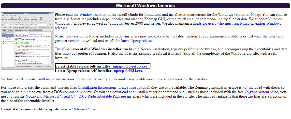 Truy cập https://nmap.org/download.html và tải về bản cài đặt như sau :