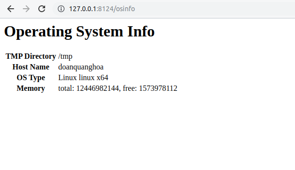 Nếu bạn đã từng làm việc với PHP thì đoạn code trên làm một số công việc tương tự như hàm sysinfo() trong PHP, module os có chức năng cung cấp các thông tin về server, nếu muốn bạn có thể tìm hiểu thêm về module này trên mạng.