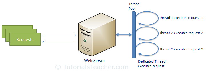 Trong mô hình máy chủ web truyền thống, mỗi yêu cầu được xử lý bởi một luồng chuyên dụng từ nhóm luồng. Nếu không có luồng nào có sẵn trong nhóm luồng tại bất kỳ thời điểm nào thì yêu cầu sẽ đợi đến luồng có sẵn tiếp theo. Luồng chuyên dụng thực hiện một yêu cầu cụ thể và không quay lại nhóm luồng cho đến khi hoàn thành thực hiện và trả về phản hồi.