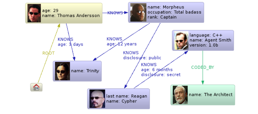 - Mỗi node sẽ có 1 label và một số properties - tương tự 1 row trong RDBMS.