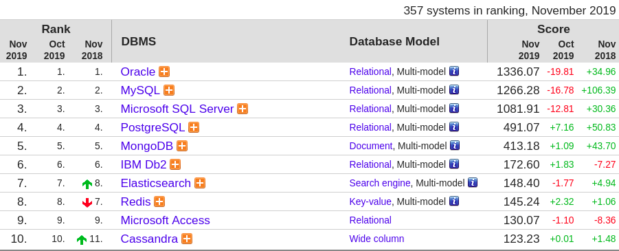 Top 10 DBMS theo thống kê mới nhất của DB-ENGINES