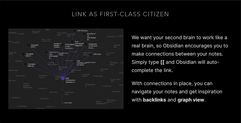 Obsidian còn làm được nhiều hơn thế nữa. Obsidian được miêu tả như là một công cụ giúp chúng ta xây dựng "Second Brain", một bộ não thứ hai . App có cách tổ chức sắp xếp đặc biệt, được gợi cảm ứng từ các mà bộ não chúng ta hoạt động.