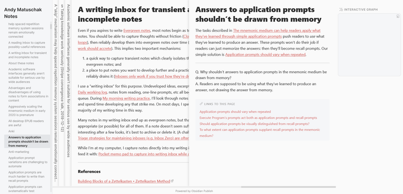 Tuy nhiên, Obsidian cũng làm được tất cả các việc trên (tất nhiên là chưa đến mức tuyệt vời đc như RoamResearch), hơn nữa là trên local (RoamResearch đã từng trải qua một đợt mất dữ liệu khiến người dùng khá lo ngại), và không mất phí (save you 15$/month).