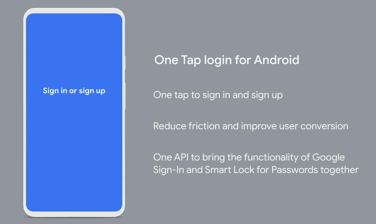 One Tap tạo luồng UI cho việc đăng kí hoặc đăng nhập cho ứng dụng 1 cách đơn giản. Chỉ cần 1 cửa sổ bật lên, chọn tài khoản muốn liên kết, và người dùng đã được xác thực mà không cần phải điền vô số những thông tin không cần thiết. Lưu ý rằng đối với những ứng dụng cần sử dụng thông tin của người dùng chính xác, One Tap sẽ không thay thế hoàn toàn cho luồng đăng nhập hoặc đăng kí sẵn có của ứng dụng, nó chỉ giúp bạn tối ưu hóa trải nghiệm người dùng trong ứng dụng mà thôi.