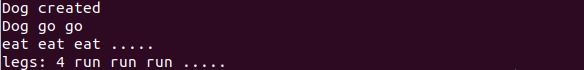 Trong ví dụ trên chúng ta định nghĩa hai lớp là là Animal và lớp Dog. Lớp Dog kế thừa từ lớp Animal, sử dụng lại một số phương thức, thuộc tính của lớp Animal và có các phương thức của riêng nó. Ở trên lớp Dog kế thừa phương thức eat(), kế thừa và thay đổi phương thức whoAmI(), ngoài ra lớp Dog còn có phương thức của riêng nó là phương thức run(). Ta có thể thấy lớp dog đã sử dụng lại thuộc tính legs và thay đổi giá trị của thuộc tính này là 4.