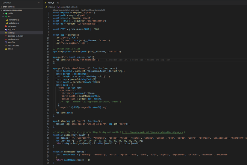 Đầu tiên ta sẽ clone project mẫu về: git clone https://github.com/ProjectOpenSea/metadata-api-nodejs.git