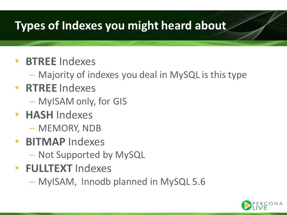 Ví dụ bạn cần các kiểu index khác nhau cho dữ liệu 1 bảng. Nhưng do MySQL không hỡ trợ 1 bảng có 2 storage engine khác nhau, nên ta có thể dùng 1 cache table. Ở bảng gốc nếu storage engine là InnoDB thì trong bảng cache( chứa 1 số cột từ bảng gốc) ta có thể sử dụng MyISAM engine. Như vậy chúng ta sẽ có thể truy vấn = index của cả 2 storage engine này hỗ trợ. Quả là hữu dụng phải không nào.