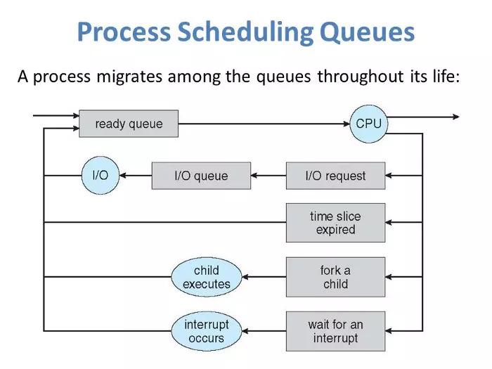 OS hay Scheduler quản lý OS qua Process Scheduling Queues (Hàng đợi lập lịch tiến trình). Mỗi trạng thái của thread sẽ có một Queue riêng tương ứng. Khi trạng thái của một tiến trình được thay đổi, PCB của thread sẽ bị xóa liên kết khỏi hàng đợi hiện tại và được chuyển sang hàng đợi trạng thái mới (áp dụng thuật toán danh sách liên kết cơ bản và cơ chế truy xuất theo địa chỉ). Ngoài các hàng đợi theo trạng thái, hệ điều hành còn duy trì một số hàng đợi như: