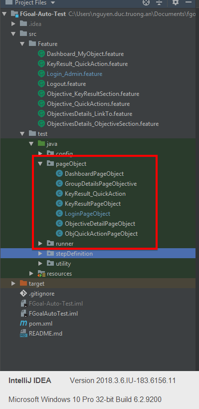 Tất cả những class đó nên được để chung vào 1 package gọi là pageObjects