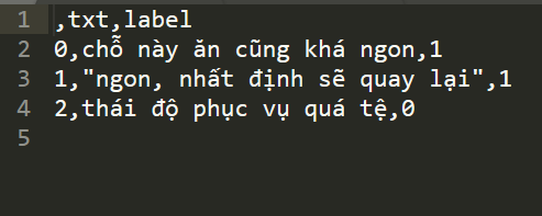 txts = ['chỗ này ăn cũng khá ngon', 'ngon, nhất định sẽ quay lại', 'thái độ phục vụ quá tệ']