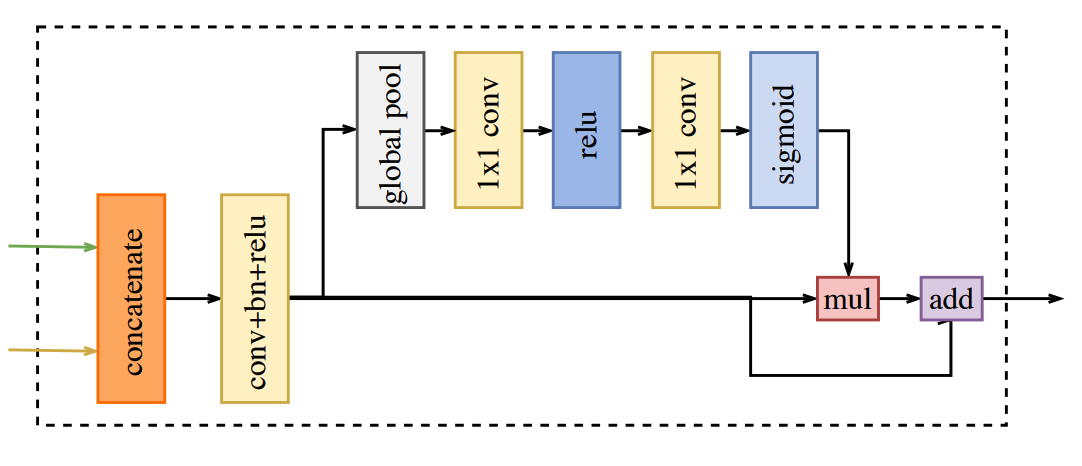 - Concatenate để kết hợp hai output feature của 2 path việc đầu tiên của FFM đó là concate chúng lại với nhau
