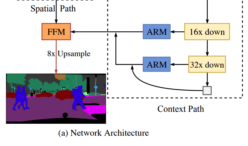 Dựa trên những điểm trên, tác giả của paper này đề xuất một cách giải quyết mới cho bài toán semantic segmentation nhằm cân bằng giữa tốc độ và độ chính xác. Kiến trúc đề xuất có tên là Bilateral Segmentation Network(BiSeNet) bao gồm hai thành phần là Spatial Path (SP) và Context Path (CP)