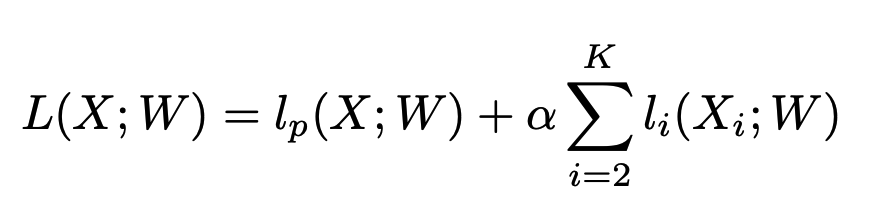 Có một hệ số được sử dụng để thể hiện mức độ kết hợp của hàm loss chính và các hàm loss phụ trợ như công thức trình hình sau