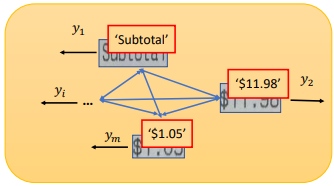 Thực hiện mô hình hóa các hình ảnh tài liệu dưới dạng đồ thị trong đó = {} với là vector đặc trưng ứng với mỗi node và ={} với là cạnh liên kết giữa node và node . Encode mỗi quan hệ giữa và thông qua một cơ chế chú ý động. Đầu tiên cần xác định quan hệ không gian giữa node và node như sau: