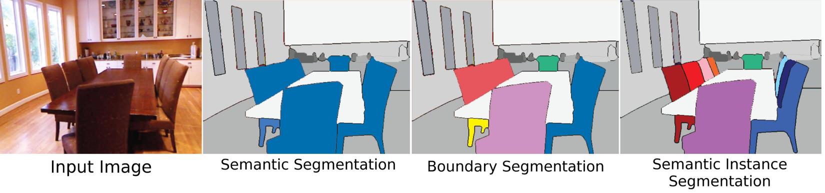 - Semantic segmentation: Thực hiện segment với từng lớp khác nhau, ví dụ: tất cả các ghế là một lớp