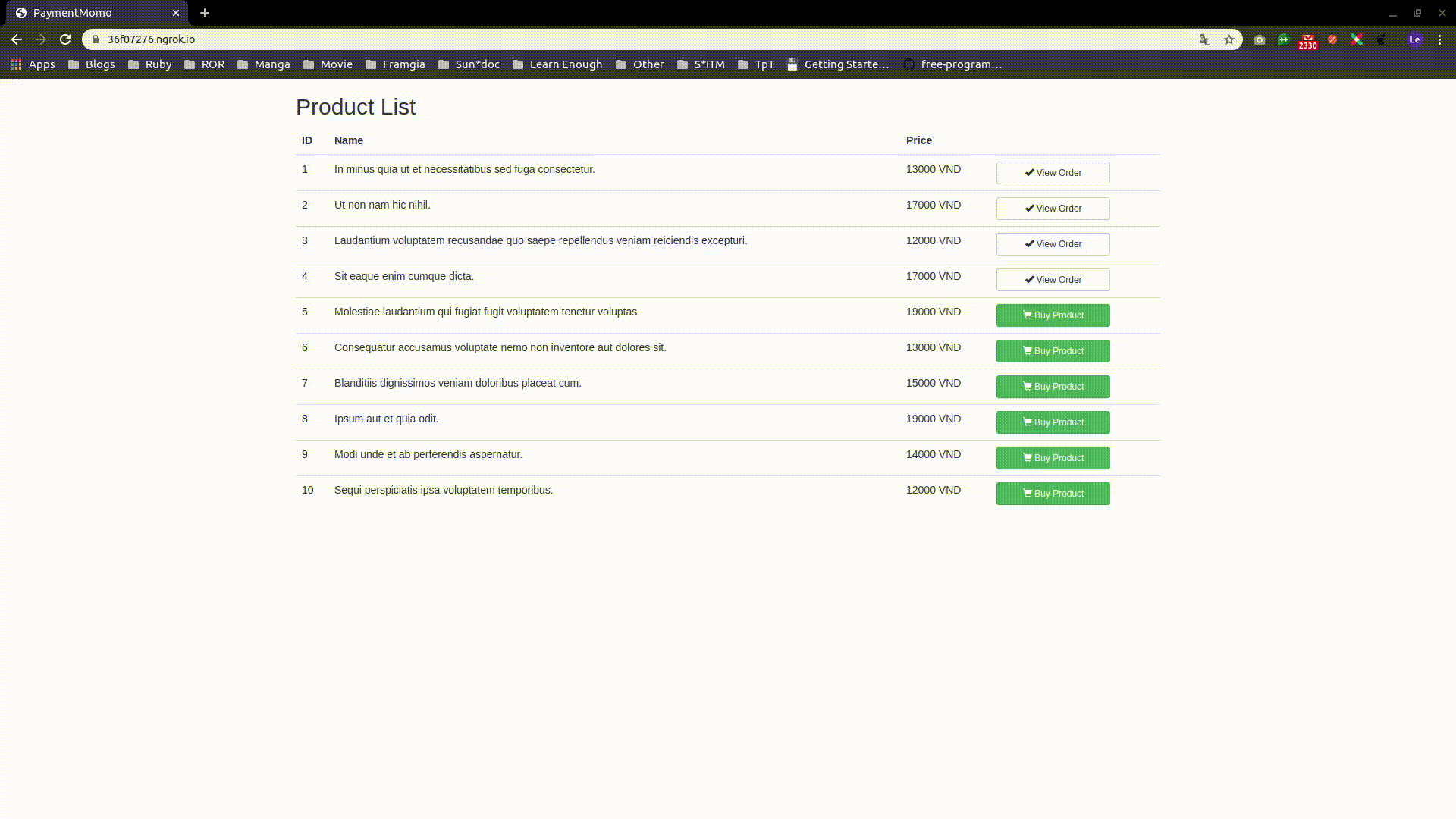 - Server thực hiện redirect đến payUrl của MoMo để user thực hiện thanh toán.
