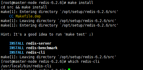Khi make install, câu lệnh sẽ thực hiện copy các file chạy redis gồm (redis-server , redis-benchmark , redis-cli ) vào thư mục /usr/local/bin/